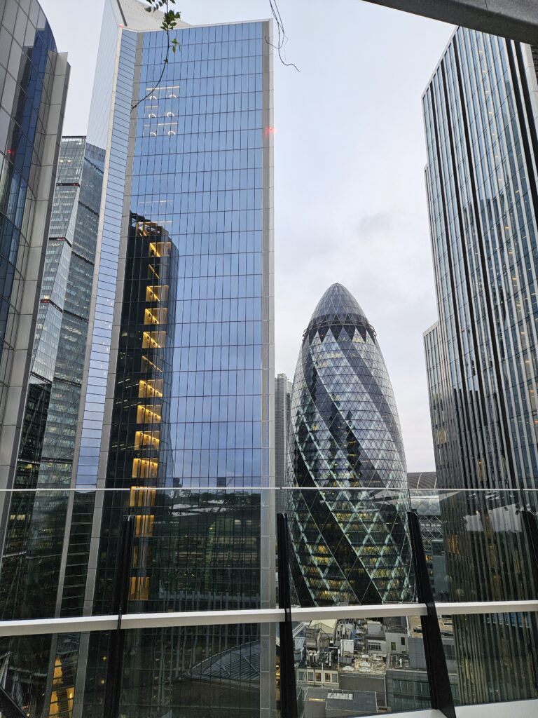 The Garden at 120: uno de los miradores más populares de Londres y nuestro favorito. Tiene unas vistas preciosas de la City y además de ser gratuito no necesita cita previa, lo único que hay que hacer simplemente es esperar la cola y subir hasta la azotea en la planta 15 que es donde se encuentra este paseo ajardinado. Para nosotros lo mejor que ver en la City de Londres.